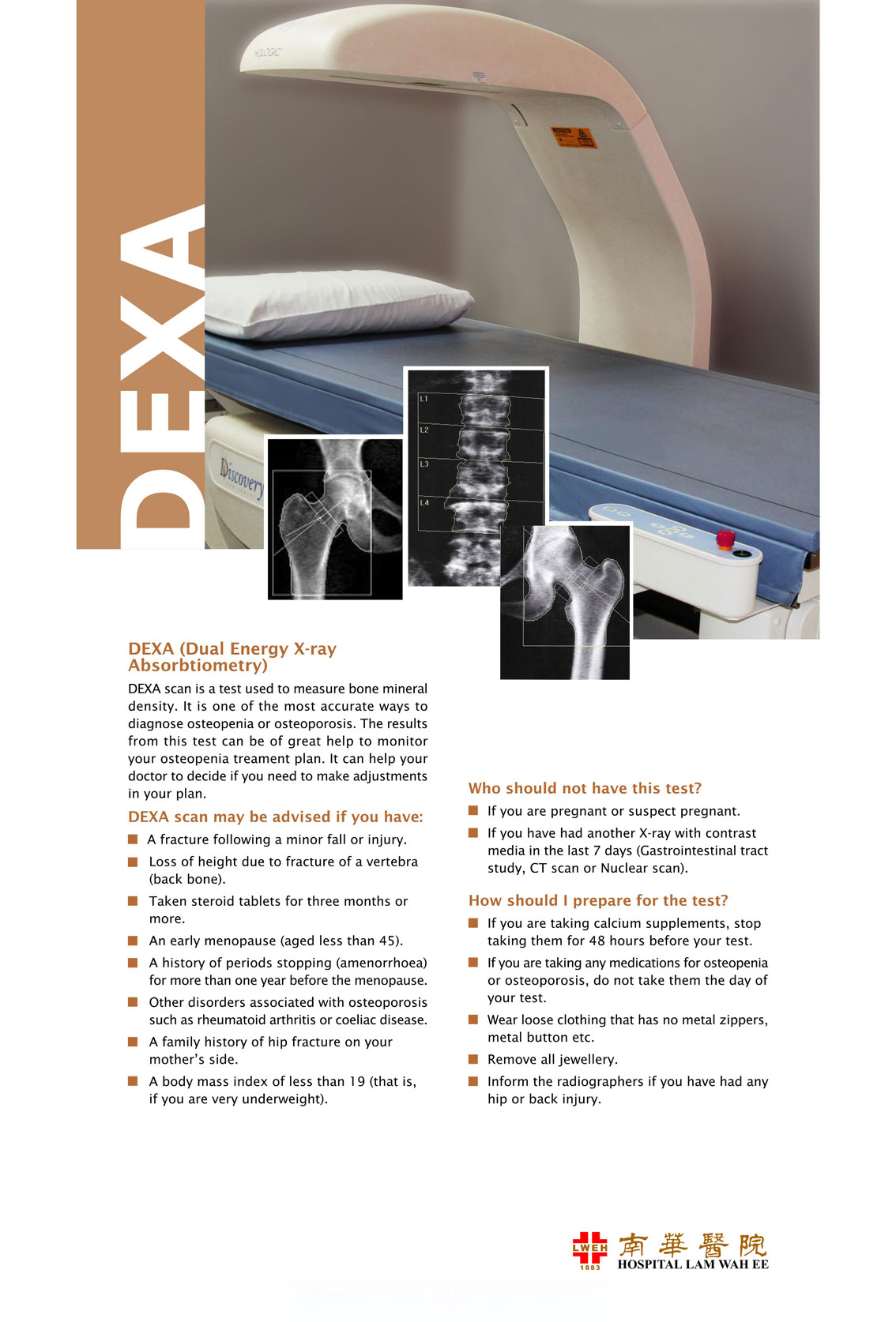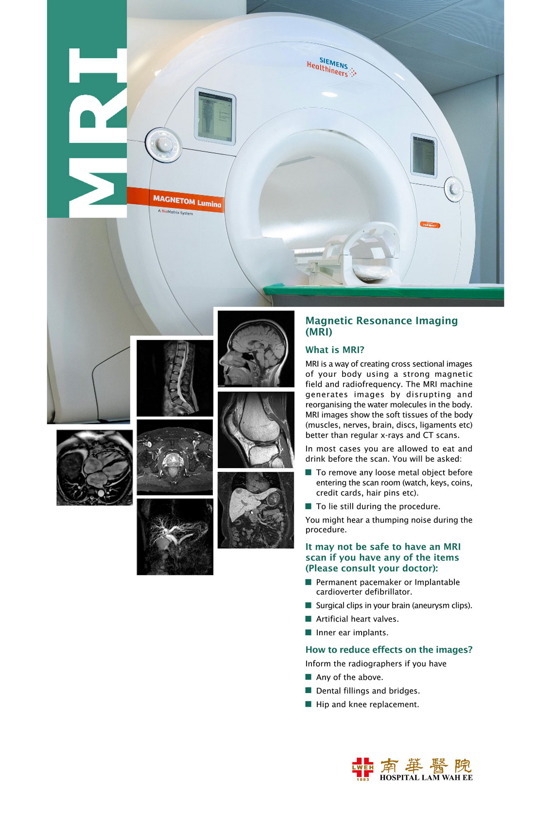 The Imaging Centre is headed by a Consultant Radiologist. There are four other Consultant Radiologists and a team of qualified Radiographers to provide diagnostic imaging service for inpatients and outpatients. Hospital Lam Wah Ee is equipped with PACS for seamless transfer, retrieval and storing of digital medical images to improve patient experience.